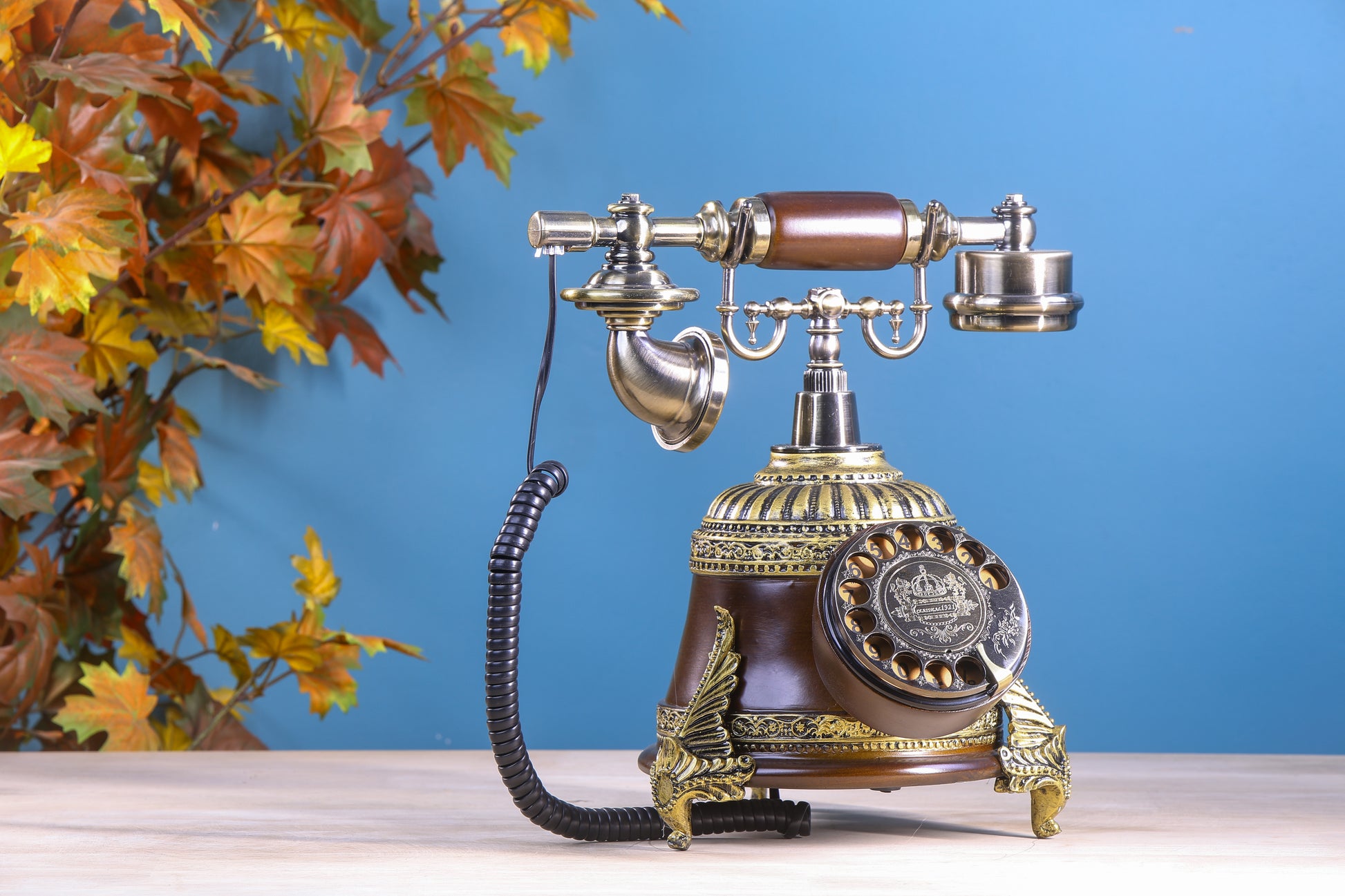 Soar into vintage luxury with The Aviator Spinner. With its long, streamlined body and intricate brass wings design, this telephone exudes regal charm. The rotator dial adds a nostalgic twist, making every call a journey back in time. Fully functional and built to last, The Aviator Spinner is an ideal statement piece for refined interiors or a memorable luxury gift.