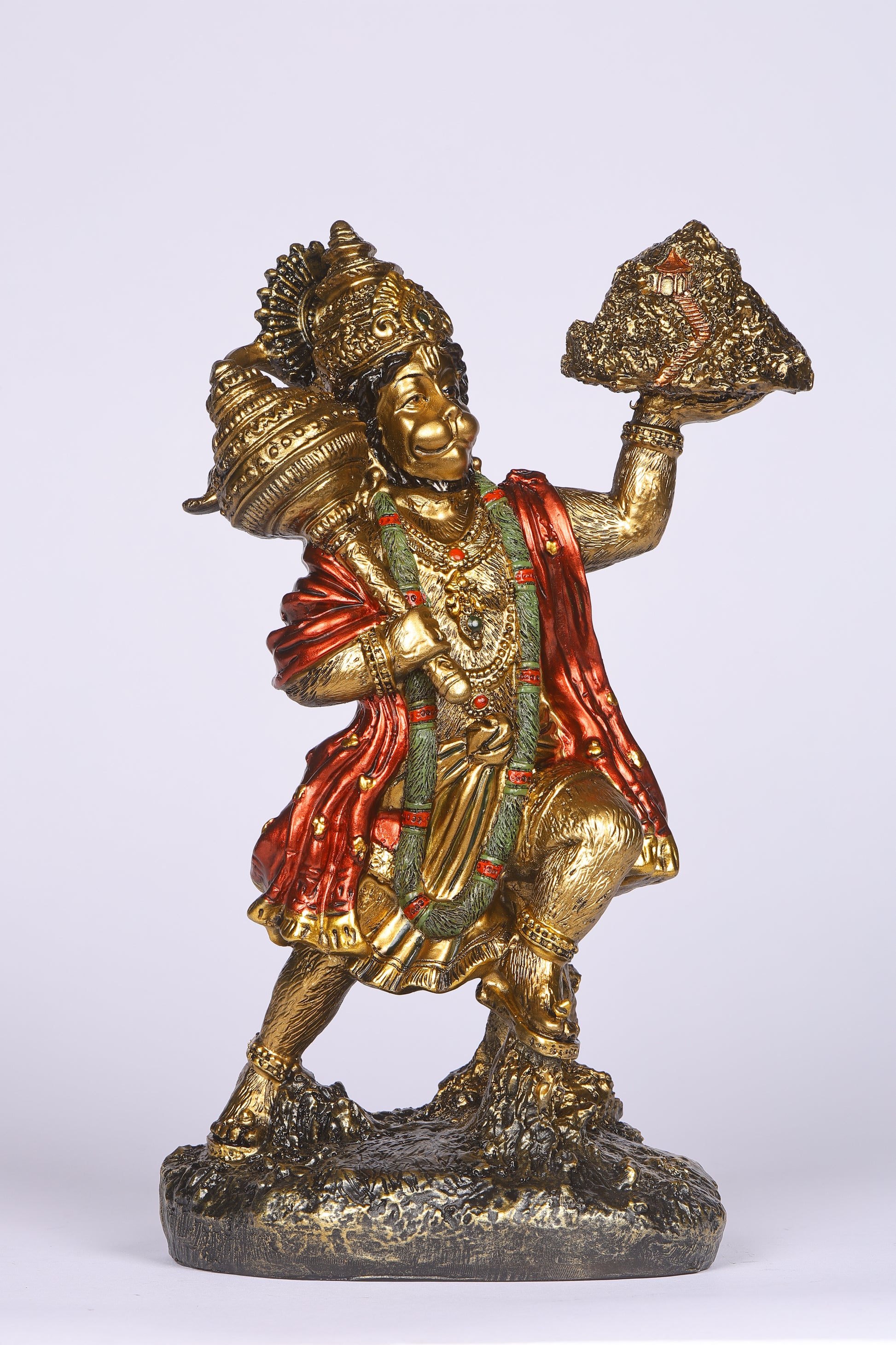 11" Hanuman Pawansut Mahabali standing Antique Finish golden red statue statue with Parvat | Ideal for temple or showpiece
