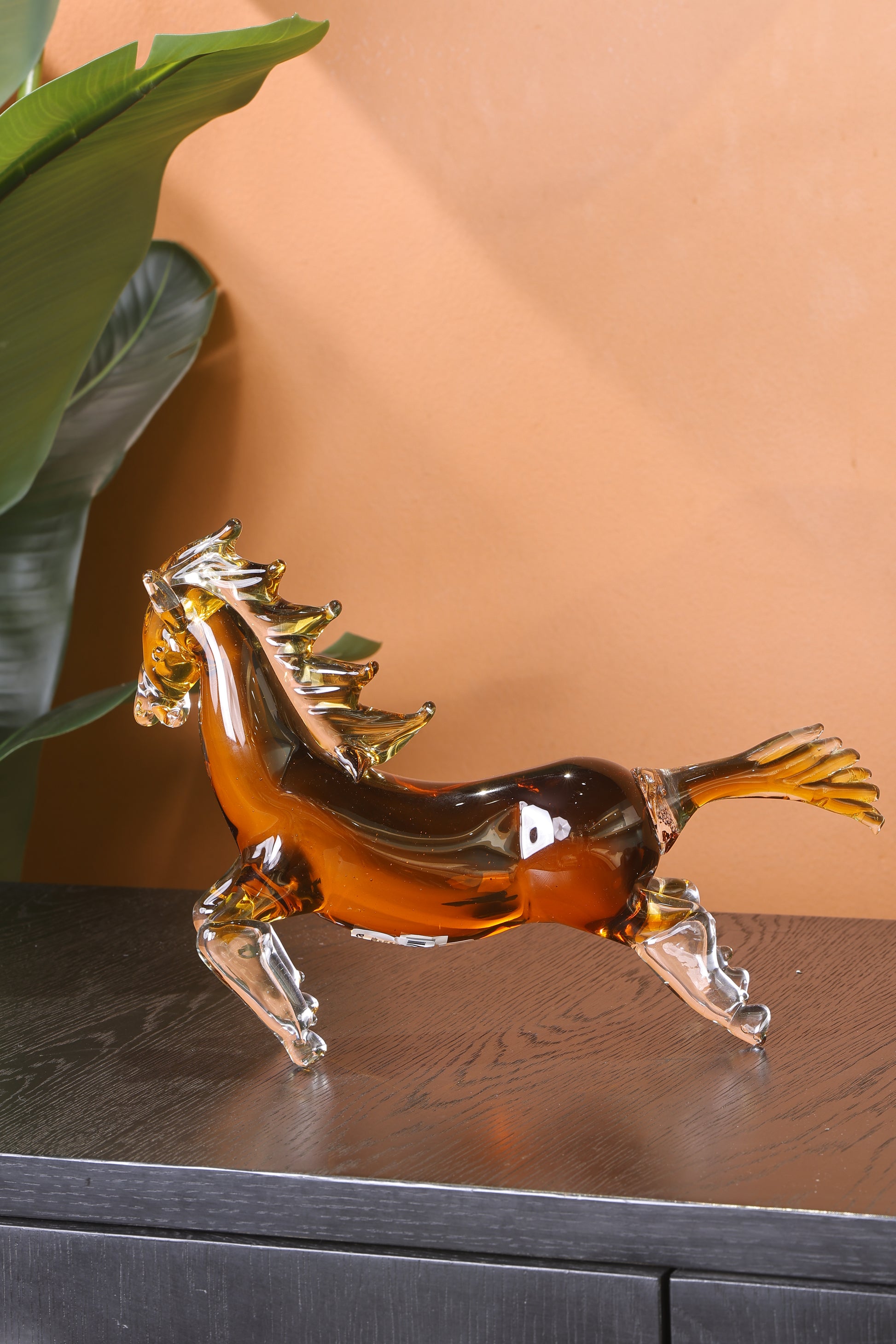 Stunning Crystal Sculpture Running Horse Statue Home Decor Accent - Orange