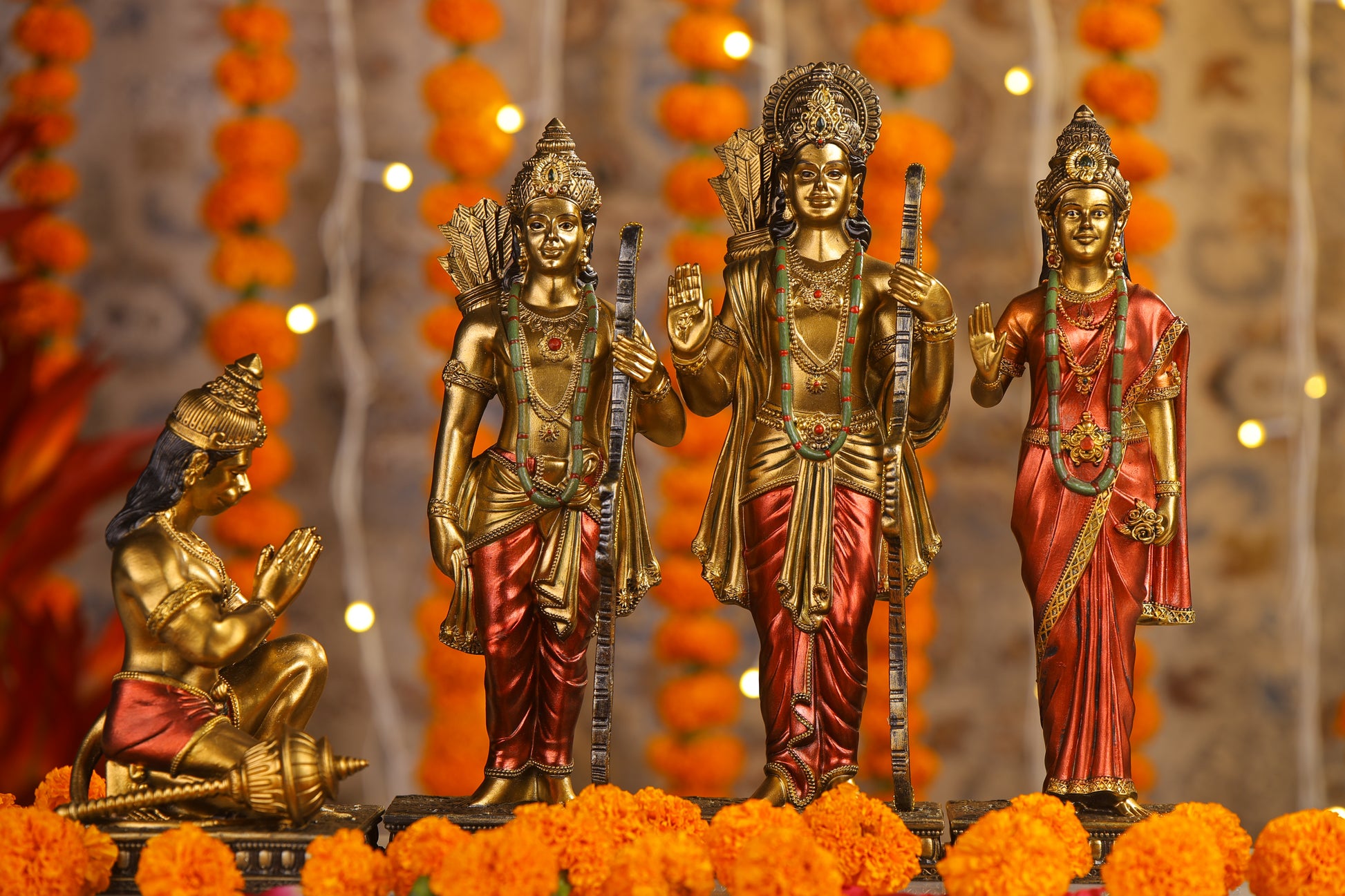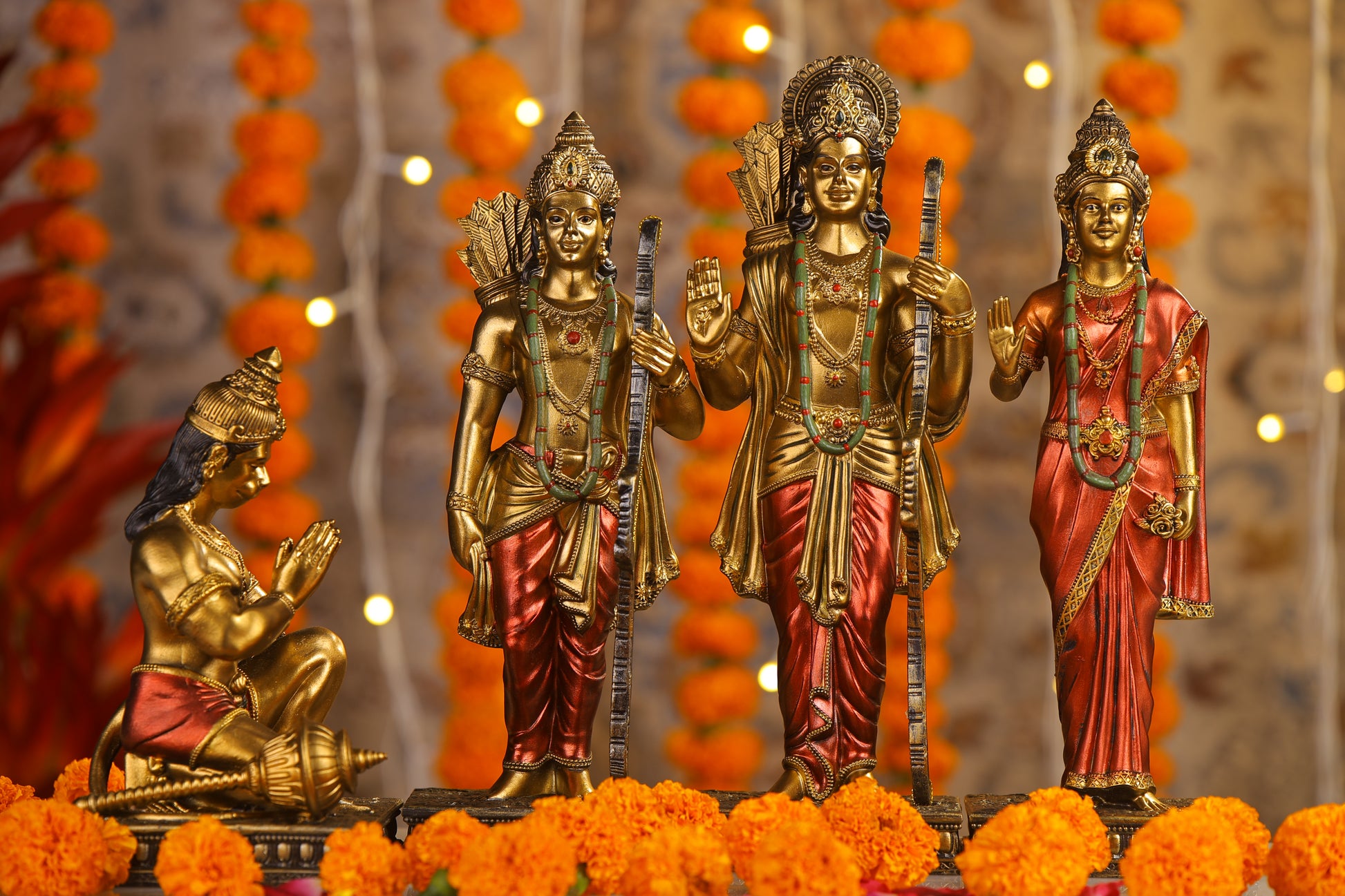 12" Ram Darbaar Antique Finish golden red statue - Shree Ram Ma Sita Laxman And Hanuman Darbar Idol for home temple