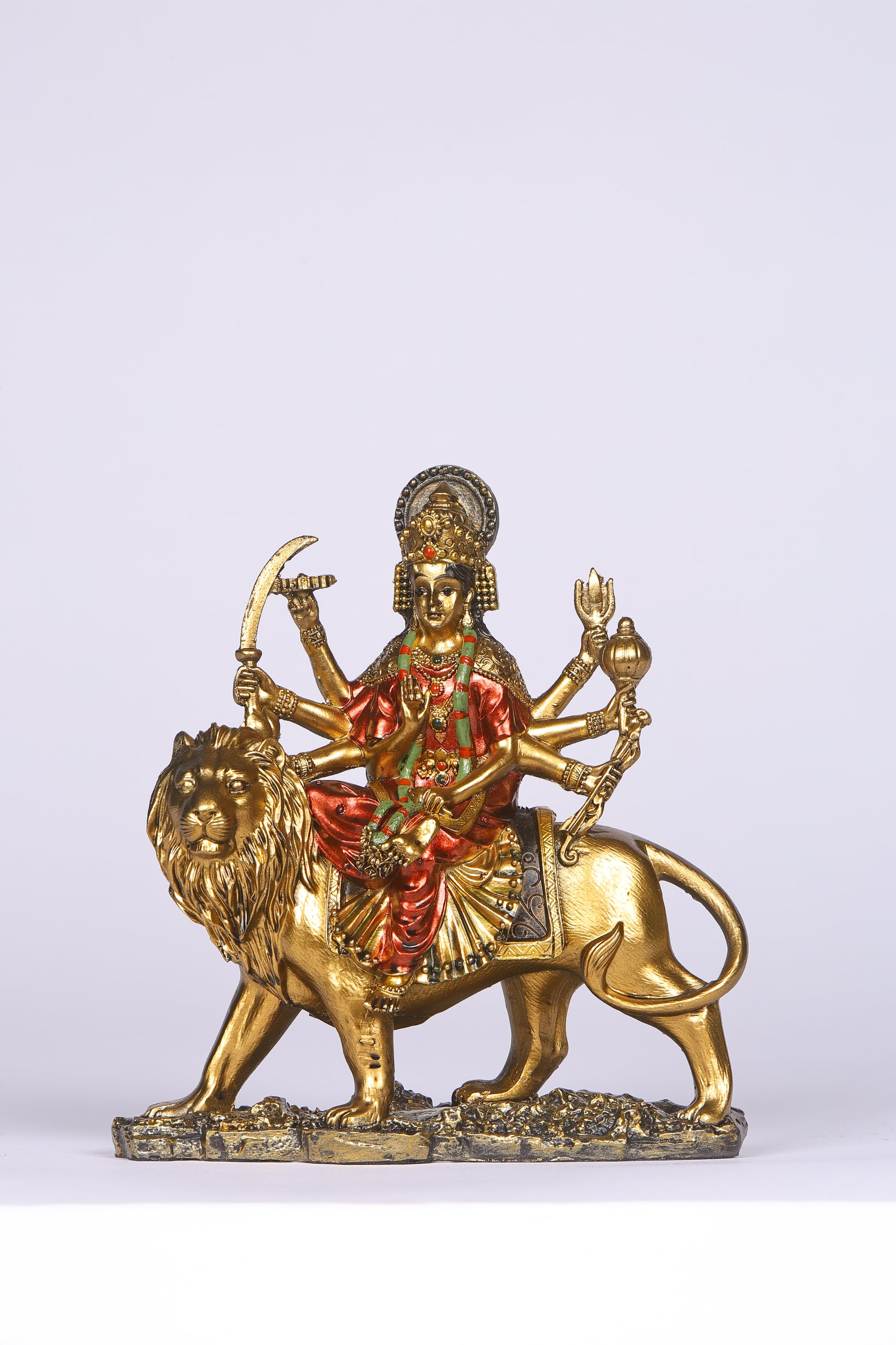 6" Maa Sherawali Jagdambe Durga Ji Antique Finish golden red statue| Ideal for temple or showpiece