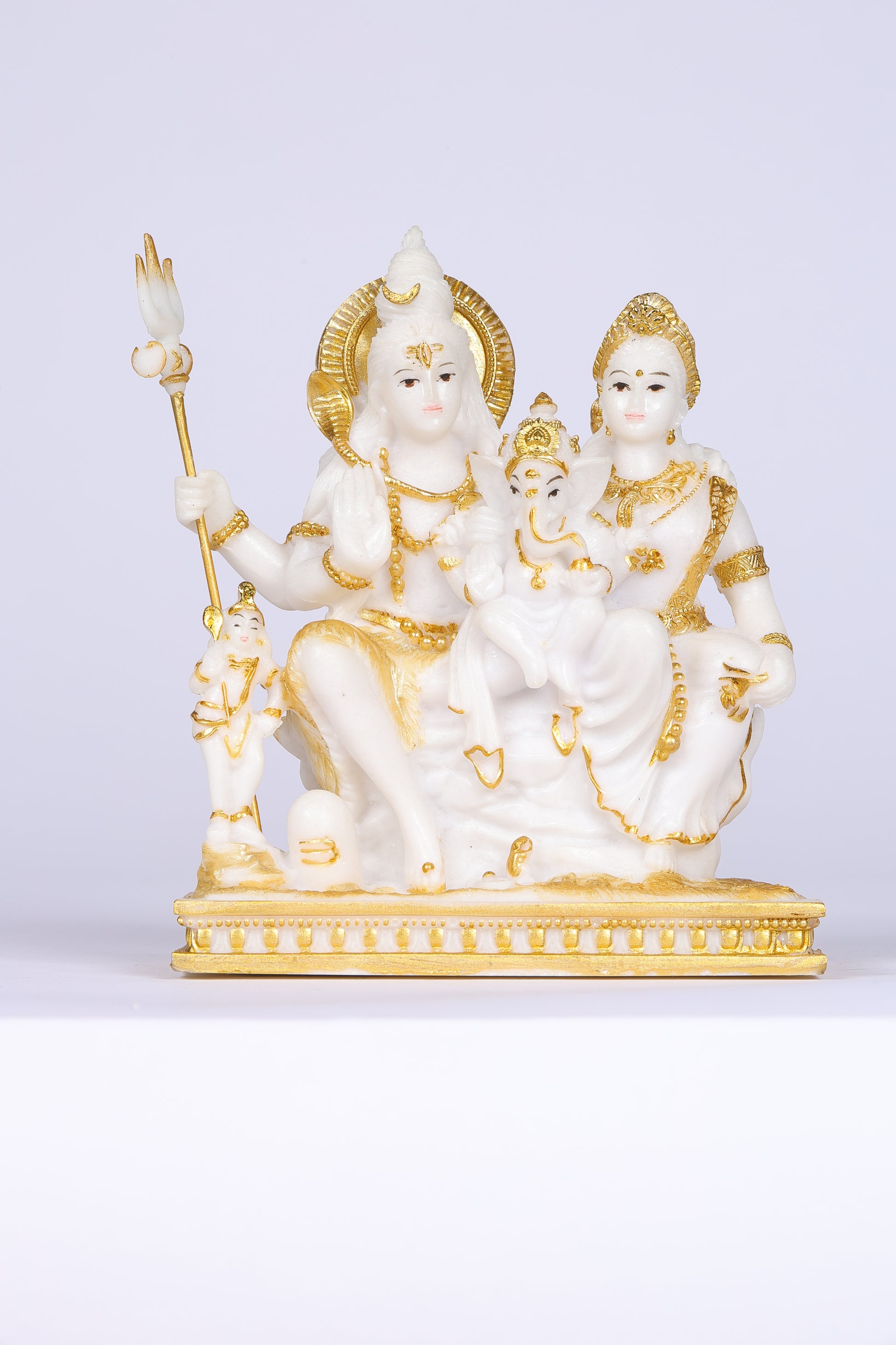 6" Shiva Parivaar sitting on Gold toned Marble statue - Shiva Prvati Gamesha and Kartikeya| Ideal for temple or showpiece
