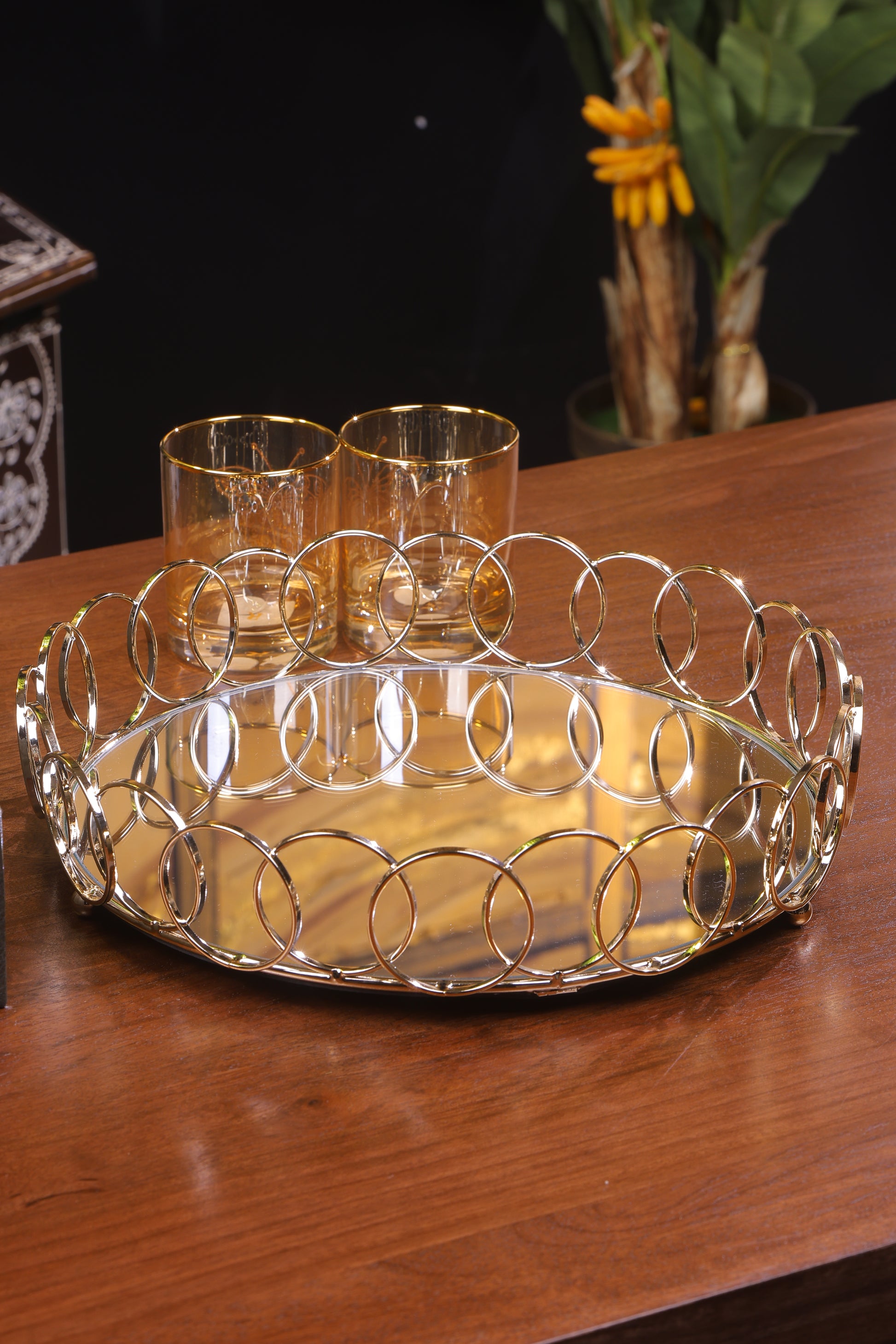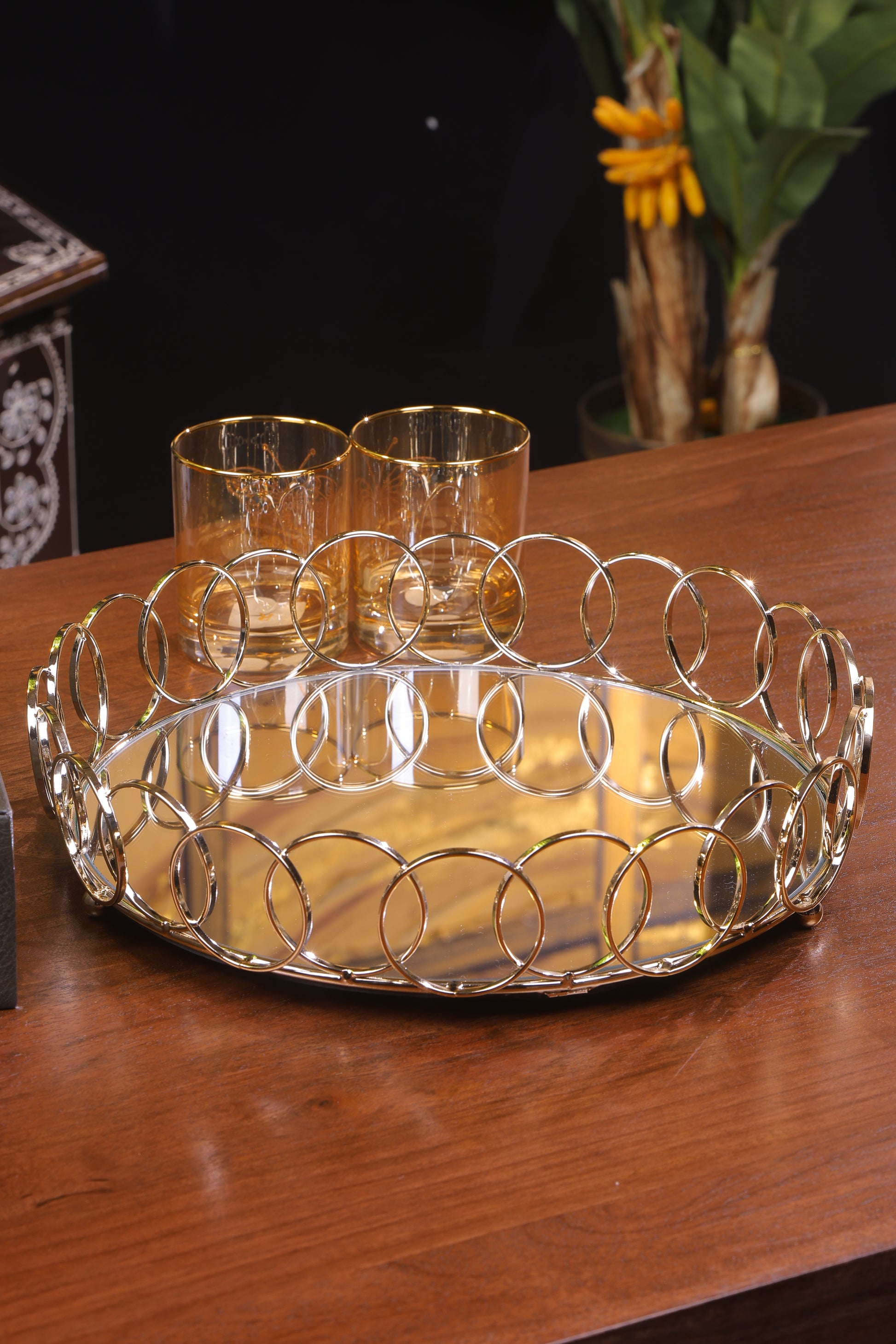 Elegant Spiral Design Gold Mirror Tray