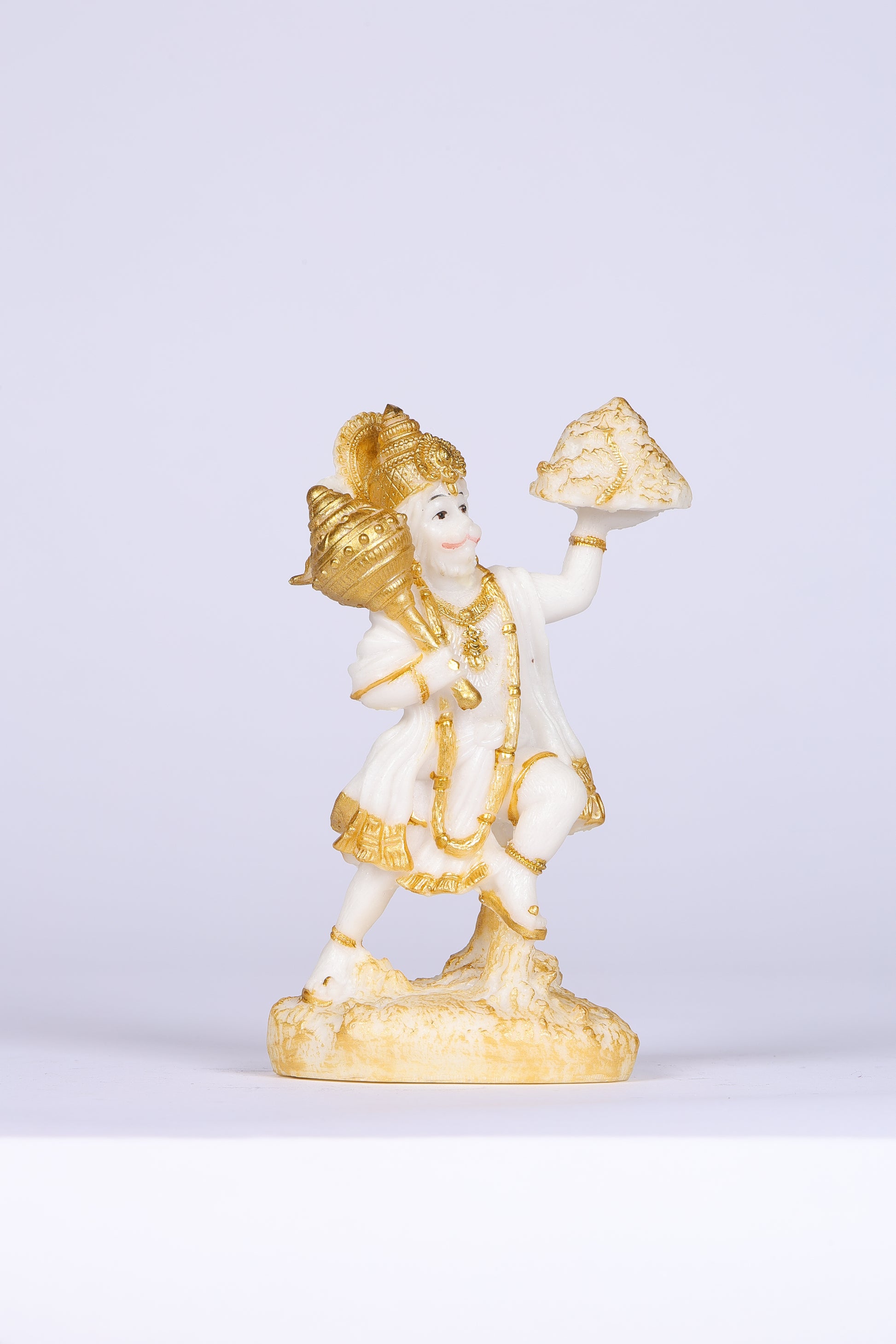 6" Hanuman Pawansut Mahabali standing Marble statue with Parvat | Ideal for temple or showpiece